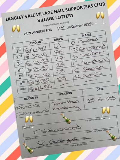The draw for the second quarter Village Hall Lottery of 2025 was made and here is the list of lucky winners .