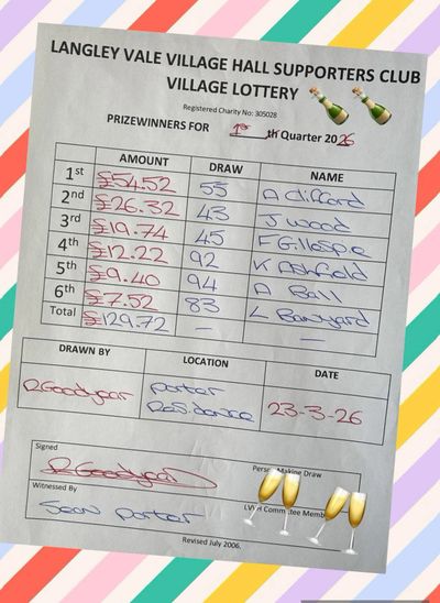 Congratulations to the winners of the 1st quarter lottery draw of 2026 and a massive thank you to everyone for your continued support of the village lotto.