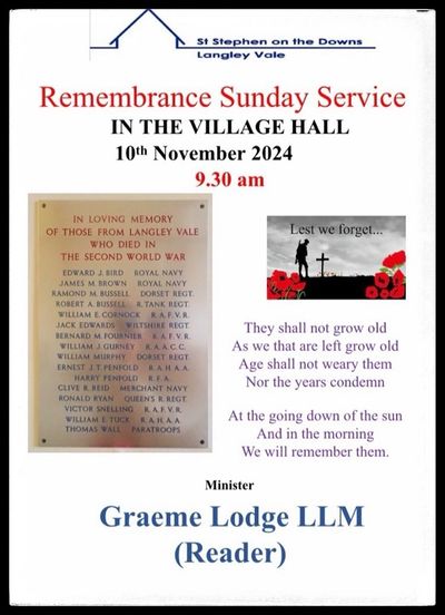 With the Church still out of use, the Remembrance Service this year was held in the village hall. The last post was played by Cliff and the names of those from the village lost during the wars were read out.