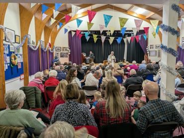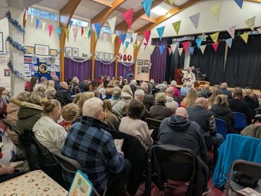 The Christmas Jumper Bingo was a very happy occasion enjoyed by a full house of attendees. It included lots of ‘five gold rings’, several ‘happy birthdays’, the switching on of the hall’s Christmas lights and culminated in a grand prize of £200!