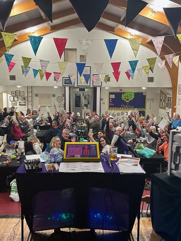🎶 🥳 The Celebration Bingo Friday evening saw a record breaking 123 bingoers dobbing away in a packed village hall with a whopping prize pot of £640….our biggest ever…..congratulations to all the winners 👏🏼👏🏼👏🏼